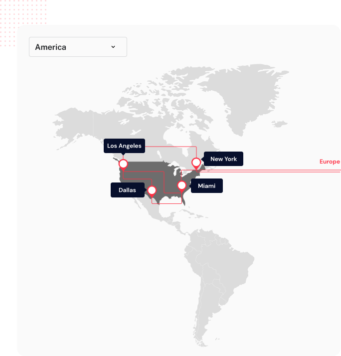Consistently low latency times and zero packet loss are the results of overprovisioned 150+ Tbps network, real‑time network monitoring.